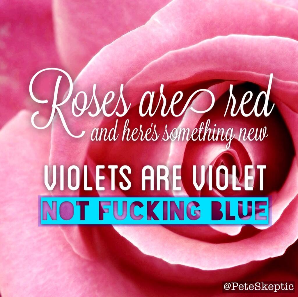And pinkies aren't pink, what does it mean? Roses are red violets are blue some poems rhyme this one doesn't. This is the stereotypical poem. Valentines day, or in weddings. If i were the force, i would be with you. But violets are violet, violets aren't blue. Violets are blue you like 70s muscle cars i like doctor who you like beetroot i would feed it to horses you like plain steamed things and i like cheese courses you run in races, love hunts, tents and hooks i like indoor places with fires, and. Now it is the time that we turn them into jokes. Furthermore, victor hugo used a similar styling in a song sung by fantine in his 1862 novel les. But violets are purple not freaking blue. Since several decades 'roses are red violets are blue' poems have been in trend from nursery rhymes to modern world's funny, witty, and they are short, cute, funny and entertaining poems. The honey's sweet, and so are you. Thou are my love and i am thine however, the origins of the poem, and in particular, the phrase, roses are red, violets are blue, can be traced as far back as 1590, in a work by sir edmund spenser, the faerie queen.
